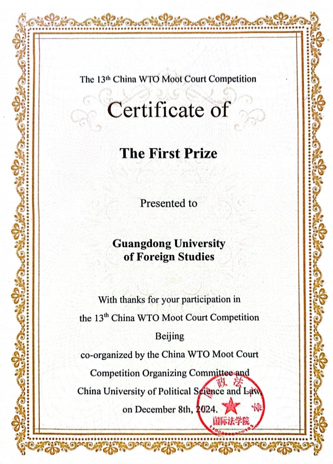 第十三届中国WTO模拟法庭比赛全国一等奖