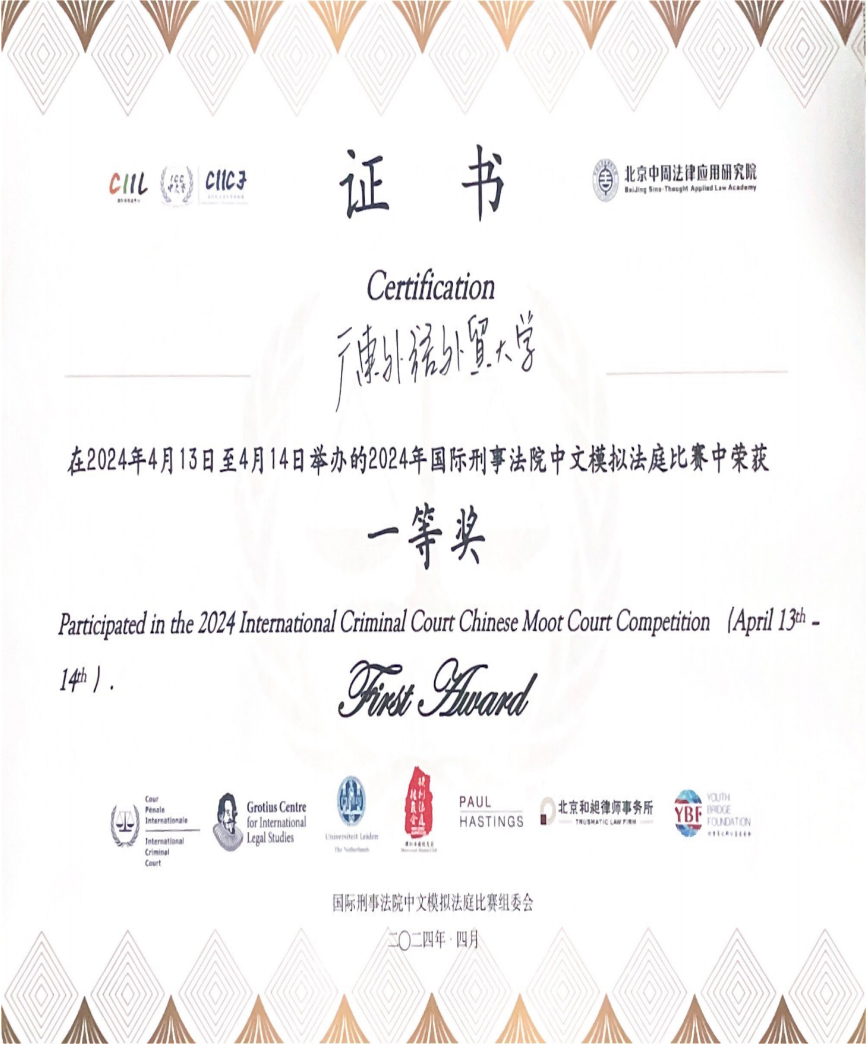 国际刑事法院模拟法庭中文赛一等奖