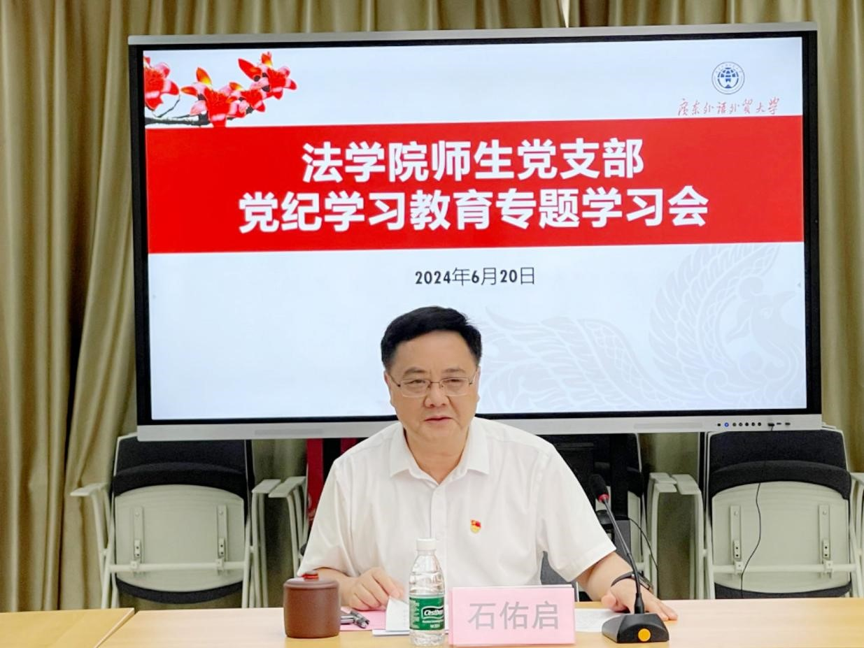 深入学习领会习近平法治思想并落实到学院发展的具体工作实践中。广外法学学科继2021年获批新增法学一级学科博士点、2023年获批设立法学一级学科博士后科研流动站后,2024年获批全国首批法律博士学位授权点,法学学科连续两年上榜软科“中国一流学科”。2024年获批自主设置刑法学二级学科硕士点。