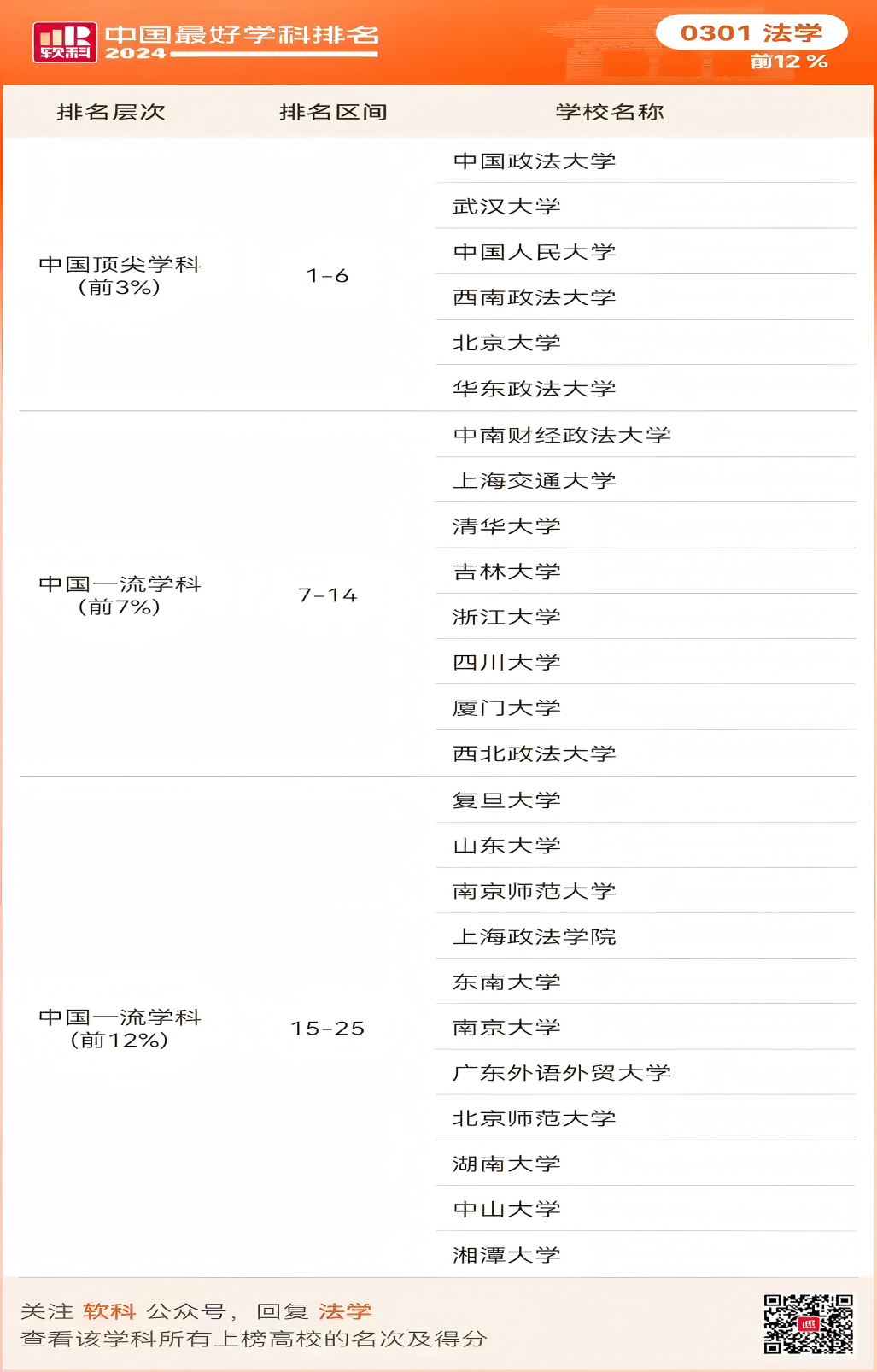 2024年软科“中国一流学科”(法学)