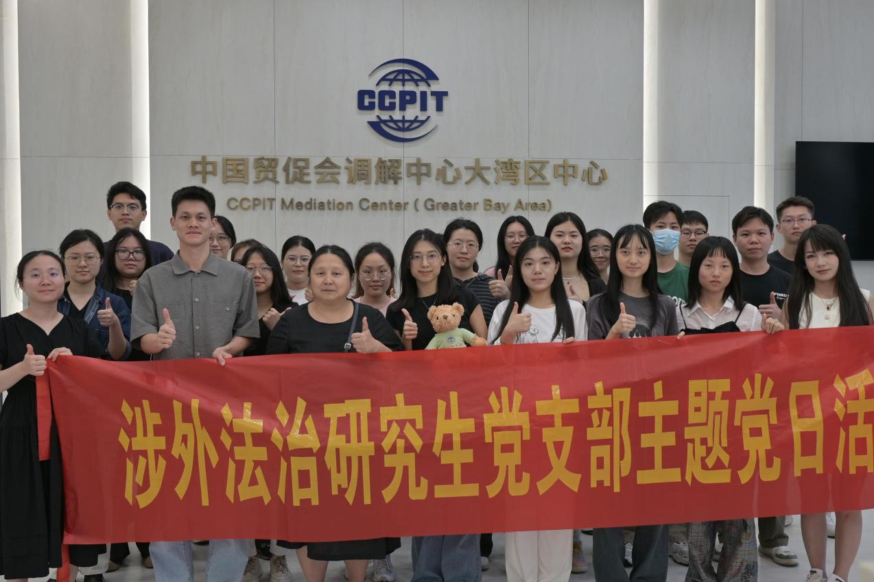 6月13日,涉外法治研究生党支部赴广州仲裁委、广东省贸促会、佛山市贸促会三地开展“党建领航探真知,涉外法治育新才”主题党日活动。法学院校外导师陈帼钊、研究生辅导员陈粤、法学院国际仲裁班、涉外法治人才班、涉外律师班的党员和积极分子参加活动。