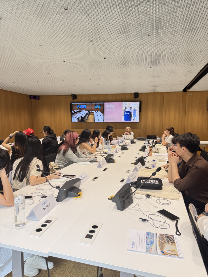 8月6日,研学团走进联合国难民署与世界卫生组织。联合国难民事务高级专员玛德琳·索泰尔女士(Ms. Madeleine Sautelle)、高级全球健康传播专家玛格丽特·哈里斯女士(Ms. Margaret Harris)分别介绍了难民署职能、难民相关概念,以及世卫组织的内部架构与机构运行机制。