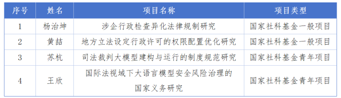 近日,全国哲学社会科学工作办公室公布了2025年国家社科基金年度项目立项名单,我校法学学科共4项获批准立项,其中一般项目2项,青年项目2项。