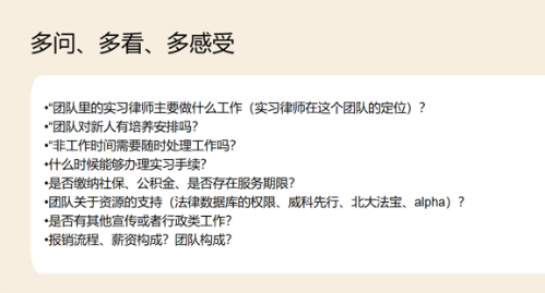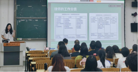 王安妮从求职者的角度出发,重点围绕两个方面进行分享:一是如何将“好”学生身份翻译成“好”律师身份;二是如何将“好”个人身份翻译成“好”团队身份。她的分享使同学们深入领会了身份转换的重要意义,且为未来的求职之路提供了清晰的指引。