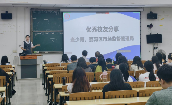 为帮助同学们更好地把握就业形势、明确职业规划、提升求职竞争力,9月17日晚,法学院在大学城校区教学楼C208举办校友分享会暨2026届毕业生就业动员会。今年正值广外建校六十周年,本次分享会特邀广东广信君达律师事务所合伙人郑璇和律所律师王安妮、广州荔湾区市场监督管理局查少菁、广州知恒律师事务所黄小琪等四位校友重返母校进行经验分享。法学院党委副书记范聪,辅导员梁怡珊、陈粤以及学院部分本科生和研究生等100余人参加此次会议。