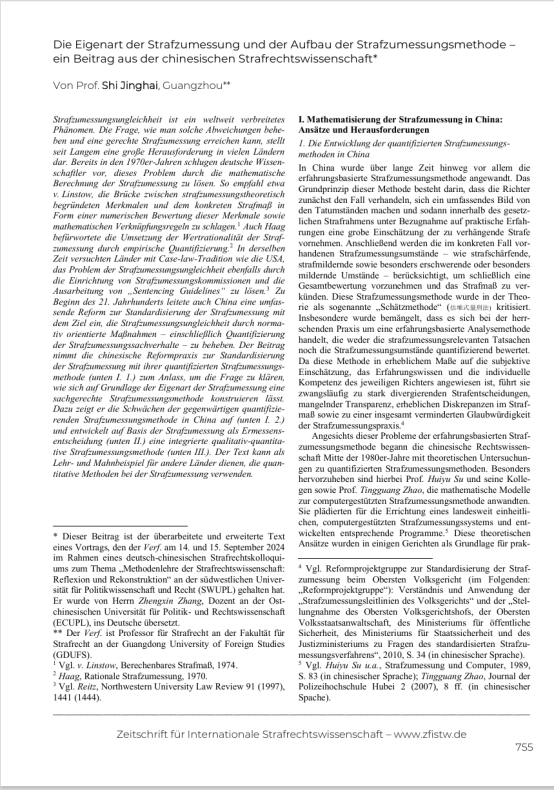 石经海教授在德国著名杂志《国际刑法科学杂志》(Zeitschrift für internationale Strafrechtswissenschaft,简称ZfIStW)2025年第6期发表论文《量刑的本质与量刑方法的构造——中国刑法学的视角》。