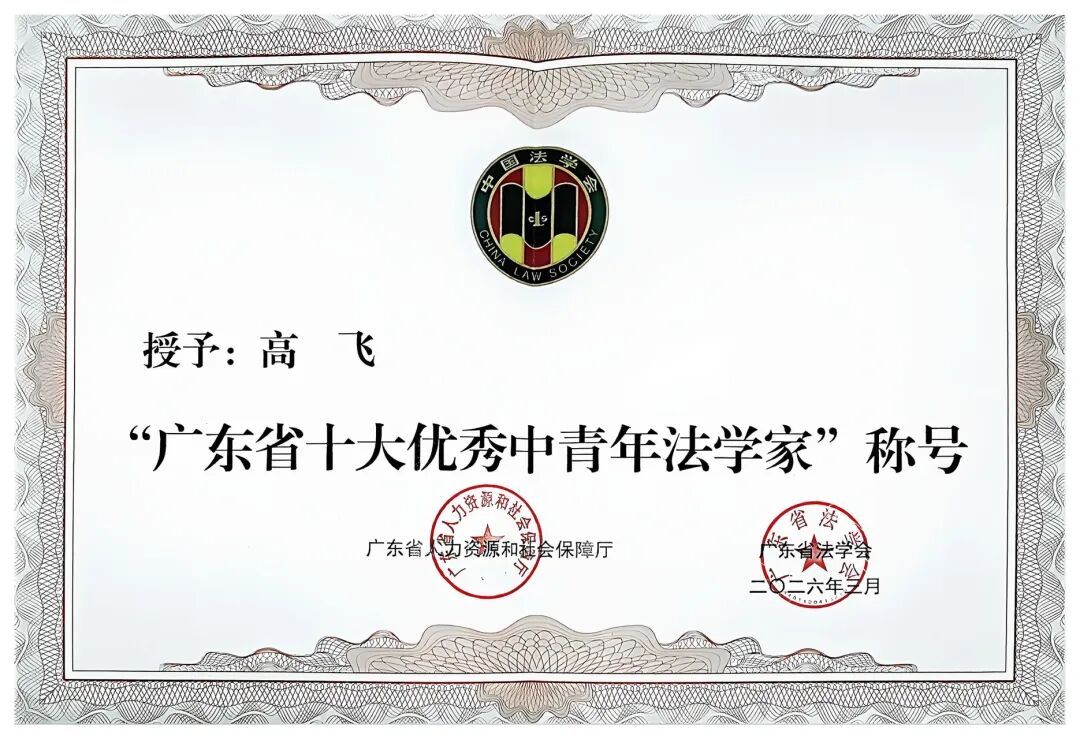 会议对全省法学会系统先进集体、先进个人和广东省十大优秀中青年法学家进行表彰。广东外语外贸大学高飞教授获评“广东省十大优秀中青年法学家”;陈云良教授、陈可翔副教授获评“全省法学会系统先进个人”;广东省法学会广东外语外贸大学“走出去”战略下涉外法律研究服务中心获评“全省法学会系统先进集体”。