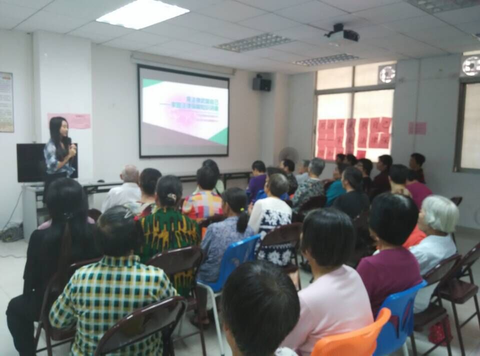 本网讯(文字:黄梓蓉;摄影:严裕港 实习编辑:王昶天)2015年11月18日下午,广东外语外贸大学法律援助中心(以下简称“广外法援”)的志愿者来到清河市场附近的美心社区星光老年之家,在大龙街家庭综合服务中心工作人员的配合下,为该社区的居民举行了以婚姻家庭法律知识为主题的普法讲座。