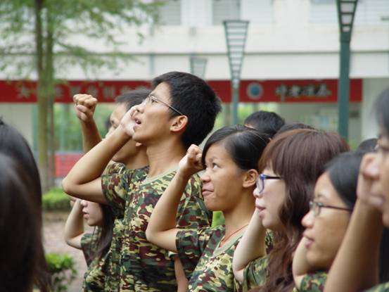 升旗完毕,当新生被问及感受时,他们回答道:“现在我心情无比激动,心中热血沸腾。我体会到作为一个中国人和一个广外人的自豪和骄傲,我感受到自己身上的责任和承担,我要坚定信心,努力奋斗。”