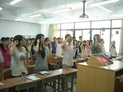 光阴似箭,转眼又是一年毕业时,当初仅有几名中共党员的2005级,如今已经发展成为拥有七个党支部、一百二十多名学生党员的大家庭。为了让即将离开校园的毕业生牢记党员义务与责任,5月12日上午,法学院党总支书记金良成、党总支副书记卢海清、外交学系教授孔庆山、05级辅导员朱海龙以及法学院2005级近百名毕业生党员共聚一堂,在六教B202举行“为党旗添彩,为母校争光”主题教育大会。