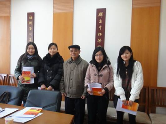 最后,冯益谦教授把书籍《感动中国英雄模范人物读本》、《优秀学子风采——寻找广外人的故事》和《中共执政成绩引世界思考——面对世界变局越站越稳,带领庞大中国强劲复兴》的资料赠送给各位发展对象,希望发展对象以后继续努力学习、积极做好各项工作,保持良好的风貌,主动积极听从党组织的号召,为国家、民族做出自己的贡献。