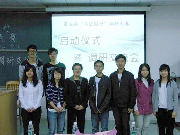 本网讯(文字:林韦因 杜颖思 摄影:江家和) 11月17日晚,法学院第五届“与法同行”调研大赛启动仪式暨调研交流会在教学楼C208举行。特邀嘉宾国际经济法系主任杨斐、第四届调研大赛冠军队非常“6+2”队员林思哲,以及团委学生会主席团各位成员出席本次会议。
