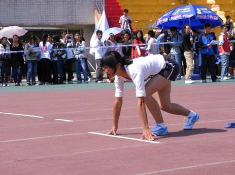 男子跳高,李亚兵代表法学院出阵,轻松跃过1.6米的高度。在挑战1.65米时,第一轮中他的表现不尽理想,在随即的第二轮中,助跑为他提供更大的初速度,纵身一跃,成功跨过了竹竿。他保持着良好的状态继续顺利地跃过1.7的高度,最后他以1.76米的成绩,获得第二。赛后,李亚兵满怀感触道,“虽然获得第二,但我并不十分满意。作为校田径队一员,没能为法学院争取到一面金牌,我觉得很遗憾。”