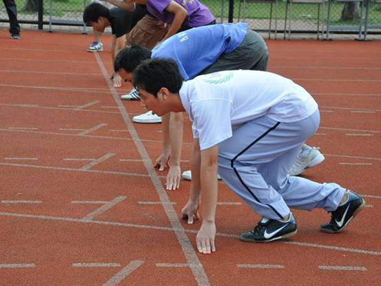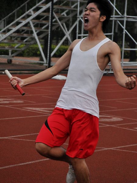 “嘭”!伴随着一声清脆的枪响,参与男子800米的勇士们奔上了红色的跑道。对于选手们来说,在阳光照耀下的血红色跑道就是他们的战场,而他们将在这战场上夺取自己的荣耀。与往年不同的是,比赛规则由500米后抢道改为200米后抢道,这也意味着选手们在接下来的600米赛程中将面临更加激烈的比拼。第一组比赛中,10法一的陈博文和10法五的张程明在第一圈中并驾齐驱,遥遥领先;第二圈时,陈博文突然发力,张程明亦奋起直追,最终,他们先后通过终点线。第二组比赛,09外交的郭曼若则独占鳌头,夺得小组第一。经过一番激烈竞争,陈博文夺得男子800米冠军,郭曼若与张程明分别位列第二,第三。