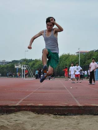 在跳远赛场上,男子三级跳正如火如荼地进行着。在今年的比赛中,有不少熟悉的面孔:去年男子三级跳冠军祁少佳和亚军陈海祥。08、09级获奖选手的参赛无疑增添了比赛的分量,10级的初生牛犊亦不惧虎威。经过一番激烈的角逐,10外交的周建烨以12.05米的成绩实现了新生代的超越,夺得第一,而祁少佳和陈海祥退居第二第三。