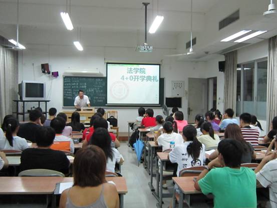 卢海清副书记就司法考试的相关信息作进一步说明,他透露,09年司法考试,我院通过率取得将近46%的骄人成绩,而今年刚刚结束的司法考试,通过率有望提高到50%。另外,他鼓励4+0新生们多参加法学院第二课堂活动,有助于他们更好地了解和接触法学。
