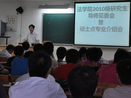 本网讯 9月16日下午,法学院2010级研究生导师见面会暨硕士点专业介绍会在南校区F207召开。法学院蔡镇顺院长、党委金良成书记、黄丽萍副院长、陈寒溪副院长、龙著华副院长以及党委副书记卢海清等多位学院的领导、老师出席了这次会议。会议上,各位领导老师在对硕士新生表示欢迎的同时也向他们提出了志存高远,品行修身的要求。