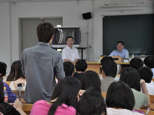 现场听众无不热情高涨,在互动环节,纷纷提问欲与教授交流。当被问及对高校去行政化有何看法时,徐真华表明不主张单独地就高校来讨论去行政化的问题,他认为这是由国情决定的,虽有不合理之处,但短时期内又不可缺少的一个制度。是受大学体制制约的,只有逐步推进,而不能简单地讨论去之。在现实与理想的差距及幸福与成功何者更为重要的问题上,教授再次申明其“立足平凡,追求卓越”的思想。他认为成功的标准人人不同,相对比之下幸福是更为重要的。以平和的心态处世,不浮躁媚俗,做最大的努力,就够了。