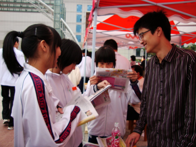 现场气氛热烈,会场人员踊跃地向服务队提出相关法律问题,蔡镇顺和同学们也热情高涨,为现场提问一一耐心细致地回答。值得一提的是,现场的中学生对我院服务队所在摊位表现出极大的兴趣,尽管他们所问的大部分问题并非与法律相关,而是更愿意与哥哥姐姐们探讨生活中的所见所闻所想,例如如何看待世界末日以及克隆等问题,我院服务队成员也是有问必答,说出对这些问题看法,不时亦能与他们擦出思想的火花。同时,我队成员也不忘鼓励他们平时要善于思考,充分利用身边的书籍及网络等资源扩充自己的知识面。此外,部分同学表示以后有意向从事法律工作,我院服务队的同学也欢迎这些同学日后报考我院。