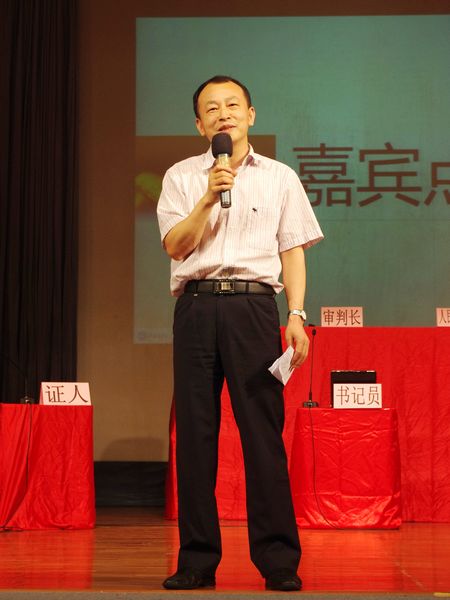 本网讯(文字:唐润云 梁安兴 摄影:曾颖琛 高晓莹 黄安琪 编辑:容燕清) 5月16日晚,由校党委宣传部和法学院主办校园精品活动——“六五”普法之广东外语外贸大学2012年度模拟法庭在B8学术报告厅正式拉开帷幕。出席本次活动的嘉宾有校团委副书记国佳,校党委宣传部副部长陈红霞,法学院副院长龙著华,党委副书记卢海清和部分院内外师生出席活动并旁听。