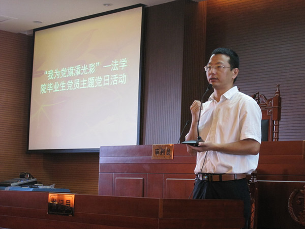 2012年5月2号,法学院在广外南校区模拟法庭召开了2012届全体毕业生党员大会暨“我为党旗添光彩”革命教育主题党日活动。法学院党委副书记卢海清、法学院08级辅导员刘青出席了大会。