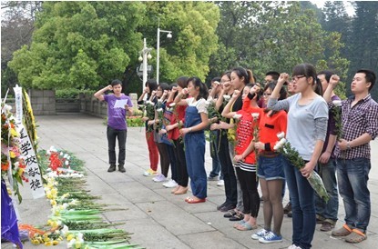 扫墓活动现场,同学们捧白菊,集体向革命先烈深鞠躬三下,并为革命先烈默哀三分钟,随后宣读了祭文,最后向革命先烈敬献鲜花。同学们在烈士陵园的纪念碑前面庄严地宣誓:发扬革命传统,继承英雄业绩,牢记人民期望,立志报效祖国。