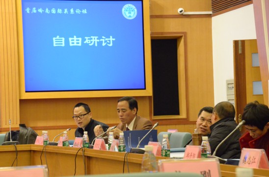 第二个议题的主题发言和自由讨论分别由广州市外办副主任王福春教授和广外党委宣传部部长胡文涛教授主持。围绕年度国际形势回顾与展望议题,与会代表就各自关注和研究的重点问题做了热烈讨论。所讨论议题包括朝鲜金正恩上台后的朝鲜外交政策和趋势、马来西亚政治的发展特点、2013年国际政治和中国外交形势、新型大国关系中的大国互动关系、美国的亚太再平衡战略等。