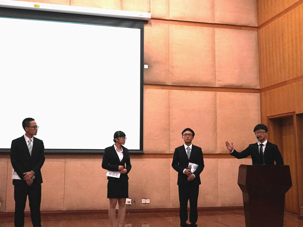 紧接着是本次比赛最为精彩的模拟发言人环节。各队模拟中国外交部发言人就给定的新闻资料表述立场,同时接受记者的提问。“太阳的爸妈队”的周洋风度翩翩,从容不迫地就美国谴责中国网络攻击一案做出回应,“网络安全应该成为中美新型大国关系的新增点而非摩擦源”。有理有利有节,充分展现了国政外交人内外兼修的专业素质。