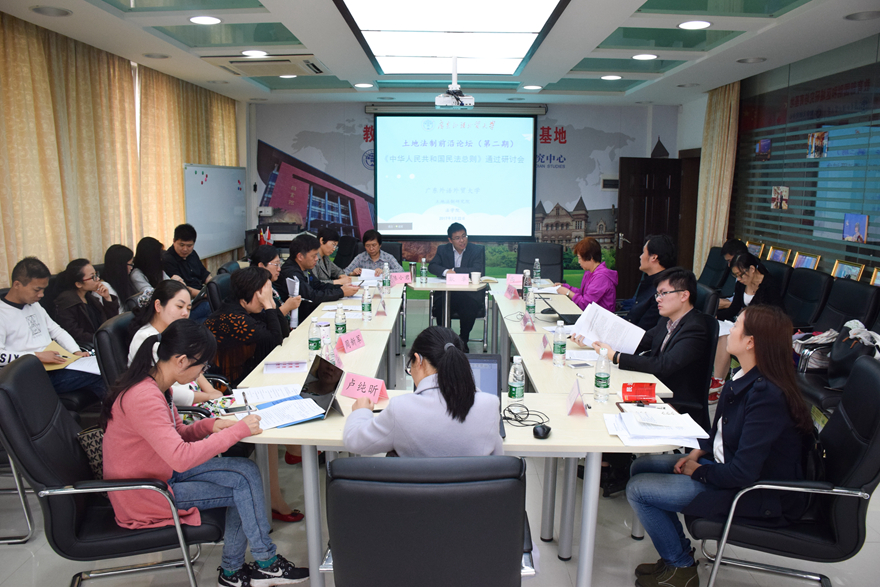 《中华人民共和国民法总则(草案)》于2017年3月15日在十二届全国人大五次会议表决通过,并将于今年10月1日起正式实施。2017年3月22日下午我校土地法制研究院与我院联合召开《中华人民共和国民法总则》(以下简称民法总则)通过研讨会。研讨会由土地法制研究院院长陈小君教授组织发起,我院副院长王荣珍教授、法律系主任杨桦教授、法硕中心主任常廷彬教授、范利平教授、周新军教授等老师和研究生参加了研讨会。