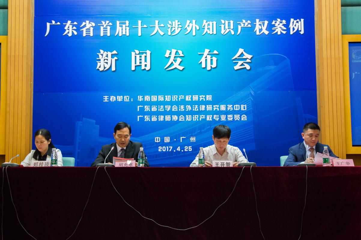 4月25日,由华南国际知识产权研究院、广东省法学会“走出去”战略下涉外法律研究服务中心、广东省律师协会知识产权专业委员会共同主办的“广东省首届十大涉外知识产权案例”新闻发布会在广东外语外贸大学行政楼三楼国际会议厅举行。