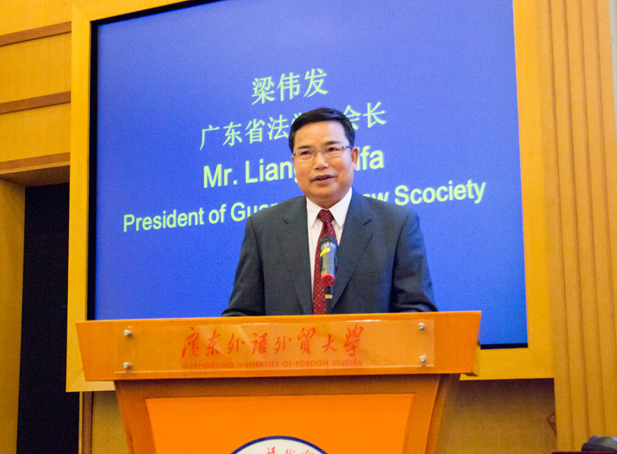 梁伟发代表广东省法学会祝贺中非法律人才交流项目第四期研修班的圆满成功。他指出,中国正在大力推进“一带一路”建设,推动亚欧非各国互利合作迈向新的历史进程,而广东在中非贸易来往中更是占据重要地位。他强调,中非法律人才交流项目研修班是中国法学会落实“约翰内斯堡行动计划”、进一步优化中非合作法律环境的举措。他介绍广东省法学会“六个平台”与“四个基地”,指出广东省法学会将继续为广东与非洲各国深入交流与互利合作做出更大努力,为广东参与“一带一路”建设做出积极贡献。