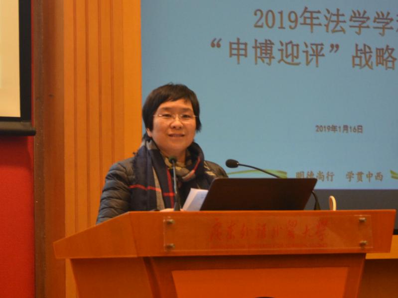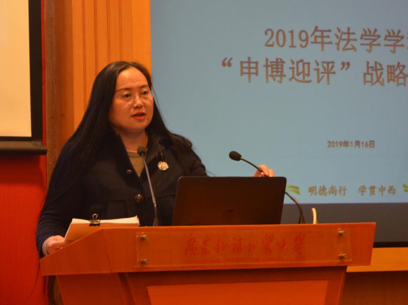 何传添副校长作题为“法学学科建设:问题与对策”的学科建设工作报告。何传添副校长首先对过去一年来广外法学学科的各位老师所付出的努力表示诚挚的感谢,同时鼓励各位老师充分利用寒假时间更加拼搏努力。他从学科与专业的关系、学科建设基本内涵、学科建设基本现状、学科建设阶段目标、学科建设思路对策等五个方面逐步展开,强调问题导向和目标导向,围绕第四轮学科评估的情况进行全面介绍和系统分析,从而针对下一轮的学科评估及博士点申报工作提出具有全局性的建设意见和建议。