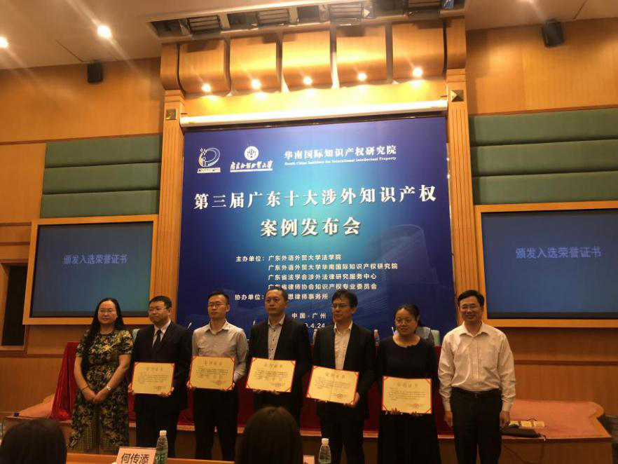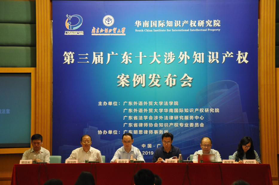 4月24日,由华南国际知识产权研究院、广东外语外贸大学法学院、广东省法学会涉外法律研究服务中心、广东省律师协会知识产权专业委员会、广东明思律师事务所共同主办的“第三届广东十大涉外知识产权案例发布会”在广东外语外贸大学行政楼国际会议厅举行。