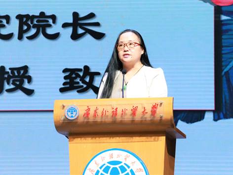 会议伊始,全体人员起立,奏唱国歌。国歌唱毕,袁泉院长致辞。她首先对2019级新生加入广外法学院表示了热烈欢迎。接着,她从学科历史、法制建设以及立德树人方面强调了法学专业的重要地位,并要求新生应当培养法律情怀,形成对法律的信仰。最后,她从广外法学院的培养目标出发,表达了对新生提升专业素养、完善自信人格、坚守法律理想、成为国际化人才的希冀。