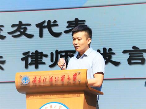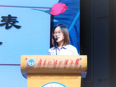 而校友黄桂洪则回顾了他在广外的学习经历,并以此激励新生学好专业课,打下坚实的知识基础。此外,他建议同学们多多参与社团活动,在社团或部门工作中收获友情、获取经验与成就感。不仅如此,他还建议新生们做好职业生涯规划,这样不至于在大二大三时失去了方向、变得迷惘。同时,他也指出了锻炼身体的重要性,选择一项喜欢的运动并将其发展成为擅长的运动项目是他对新生提出的又一建议。