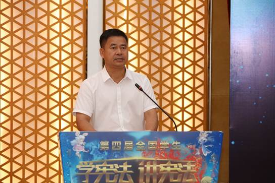 广东省教育厅副巡视员邱克楠首先代表主办单位对全国学生“学宪法 讲宪法”活动广东省决赛开赛致辞。他对来自全省以及澳门大学参赛的老师同学表示热烈欢迎。他指出,为推进教育系统学习宪法,教育部全国教育普法领导小组办公室从2016年起,坚持开展全国学生“学宪法讲宪法”活动,广东省也从当年开始举办全省学生“学宪法讲宪法”活动,到今年已是第四次举办活动。今年正值中华人民共和国70华诞,开展青少年学习宪法活动,弘扬宪法精神,意义更为突出。他预祝各位选手取得优秀成绩,在全国赛场上继续展现广东风采。