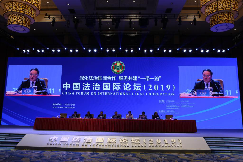 中国法治国际论坛(2019)于11月10日-11日在广州举行,本次论坛主题是“深化法治国际合作 服务共建‘一带一路’”。论坛由中国法学会主办,国家主席习近平致信祝贺论坛开幕。我校石佑启校长在论坛上做了《推进‘一带一路’法治建设的三个基本路径》的主题发言。我院袁泉院长、王太平教授、向明华教授、常廷彬教授、杨幸幸博士参加了论坛。