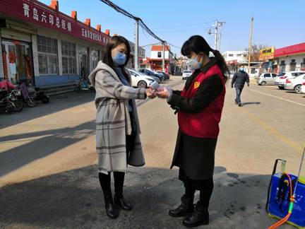 在三月初,疫情得到有效控制,全市进入复产复工高潮,大批职工返工返岗。在做通家人的工作之后,她以志愿者的身份参与到了山东省济宁市北宿煤矿留守处的防疫检测工作中。在志愿服务期间,为进出人员监测体温,以保证返岗职工处于健康状态;为来往车辆喷洒消毒液进行消毒,有效阻断病毒传播风险……