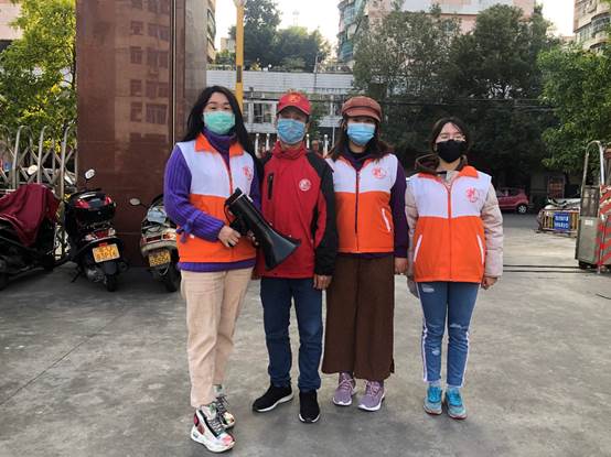 不久后,江露铭通过询问舍友了解到通过i志愿可以报名参加所在地区的志愿活动,她马上报了名参加离家最近的社区志愿活动。她又动员了自己的一个朋友和她一起加入到志愿活动中去。由于社区范围大,居民多,她们没有办法挨家挨户宣传,于是她们和其他志愿者一起骑着车走街串巷用喇叭播放一些疫情期间保障身心健康的知识。“我希望喇叭里播出的知识不仅仅传到居民们的耳朵里,更是能够切实帮助他们改善居家生活。”令她欣喜的是,路上的行人听到广播声会仔细地侧耳倾听其中的内容。一个社区,她们来来回回绕了无数遍,但是她觉得很有意义,因为倘若能够在这个特殊时期,为基层群众解答一些困惑,减少民众的恐慌以及预防新冠肺炎在社区的传播,这个志愿工作就有意义。
