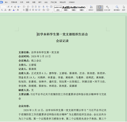 为深入学习贯彻习近平总书记对新型冠状病毒感染肺炎疫情防控的重要指示精神,落实学校党委疫情防控工作部署,充分发挥党支部在防疫工作中的堡垒和先锋模范作用。法学院党委积极引导各支部创新组织生活模式,充分利用网络新媒体平台开展线上组织生活。3月15日至20日,学院5个教工、3个本科生、6个研究生,共14个党支部先后开展线上专题组织生活。