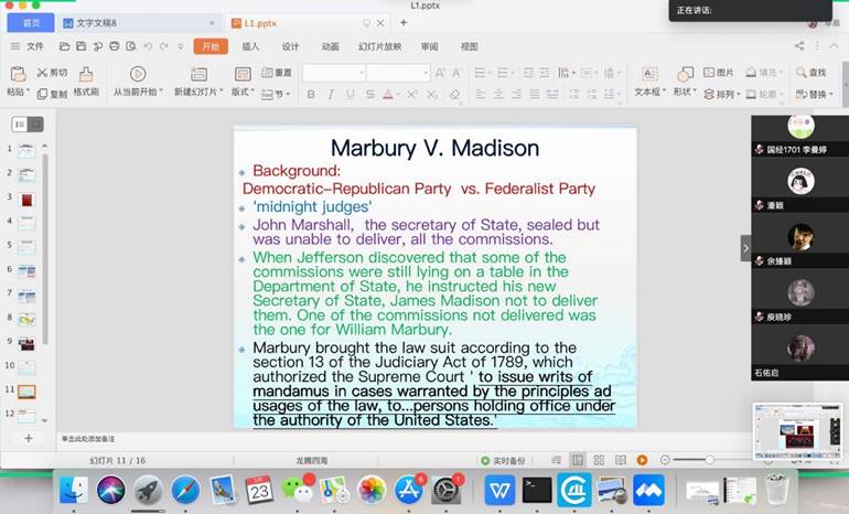 3月23日是线上教学第一天,学校领导和相关部门非常关心我院授课情况,石佑启校长致电我院分管教学副院长杨帆,勉励我院老师充分准备,要求学院为师生线上教学做好服务保障工作,并亲自上线聆听了我院梁晨老师《美国法概要》的授课,课后给予肯定评价。在学校领导关心和学院精心部署下,我院今天共有18个班次顺利完成了线上教学。