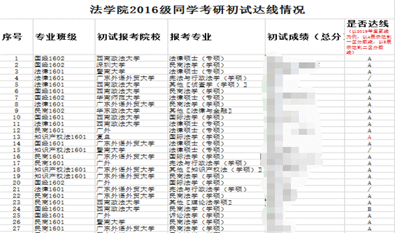 2016级考研同学初试达线情况统计