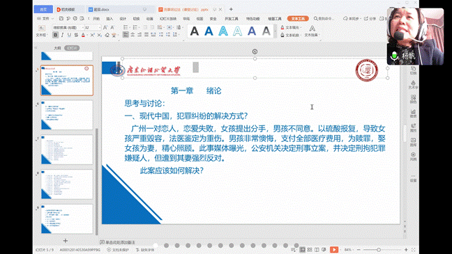 杨帆教授首先介绍了本门课程的学习方法,即同学们要将课前预习与课堂讨论、课下复习进行有机结合,强调刑事诉讼法课程具有较强的实用性,注重案例分析。她表示课程将结合法考的内容进行重难点讲解,课前要通过慕课进行充分的预习并建议做好笔记,在学习的整个过程中要注重将教材、法条、司法解释综合运用进行学习。