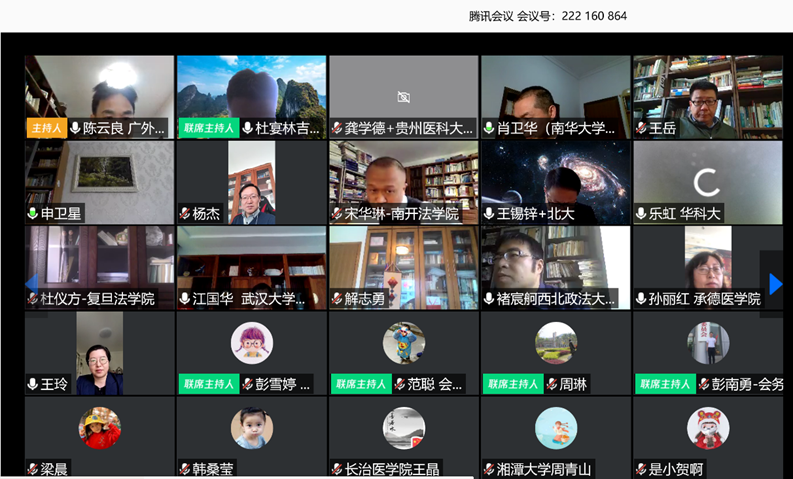 全国各地,东至上海,西至新疆,南至海南,北至黑龙江,法学院校、医学与公共卫生院校及实务部门总计超过400人进入腾讯会议室参会。