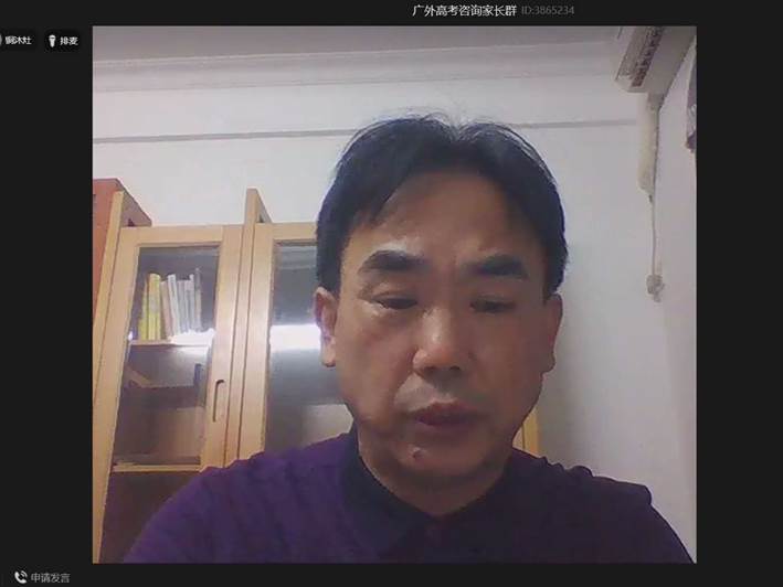 会议伊始,陈云良院长发言。他首先对2020届高考考生家长参加此次会议表示了热烈的欢迎,然后从疫情背景下国家对法治人才需求的角度切入,以“弘扬人类命运共同体思想,应对逆全球化潮流”为主题,分别从“现在国家最需要什么人才、美国为什么向中国索赔、中国抗疫的伟大贡献、中国如何应对逆全球化潮流”四个方面展开讲授,分析了目前国家对涉外法律人才的迫切需要,并简要阐述了广外法学院的办学特色和培养目标。