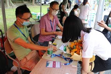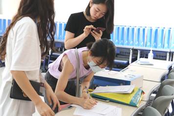 志愿者引导毕业生填写材料