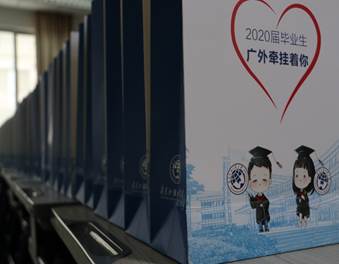 在D栋教学楼的“毕业材料领取处”,老师及志愿者们在为同学们办理户口迁移,党团关系转移等手续的同时,也为同学们贴心送上“防疫爱心包”,表达母校对他们的牵挂之情。离校在即,师恩难忘,同学们纷纷自发地在从前上课的过道上和恩师合影留念。而老师们也不忘给同学们送上临别时的叮嘱,祝愿同学们未来可期,光芒万丈。