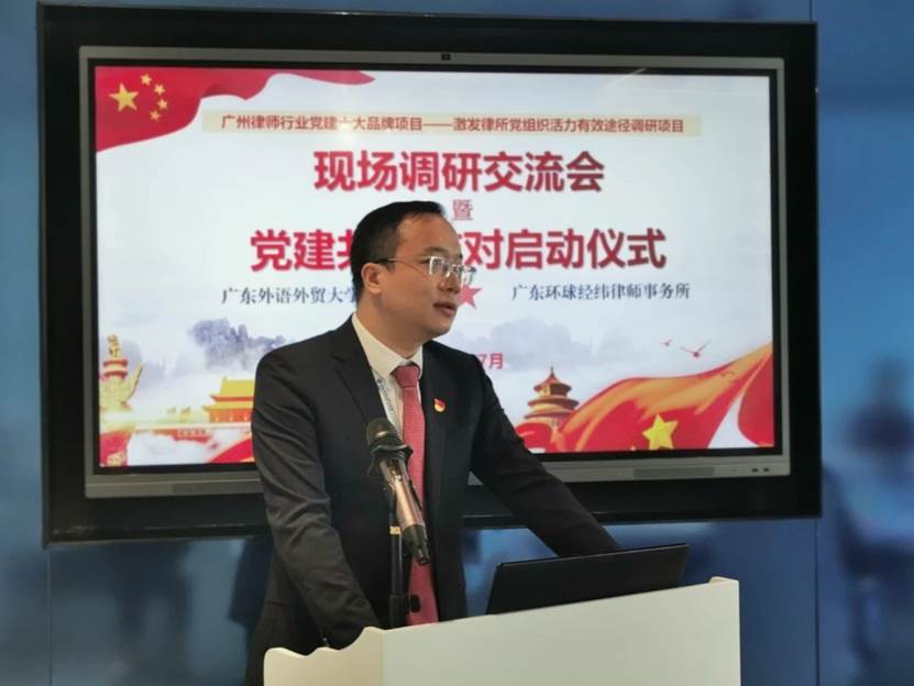 随后,关嘉文律师从“党建引领、社会责任、青年律师”三个方面介绍了环球经纬所的最新情况。他表示环球经纬所一直强调律所业务与党建工作相结合,充分发挥党员律师的先锋模带头范作用。近年来,环球经纬所在党建工作、律所发展方面取得了一定的成绩,今后将继续努力,不负韶华。