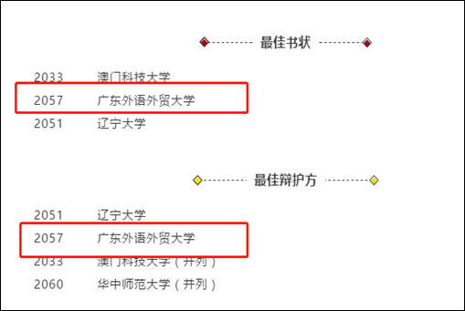 本网讯(文字:郑依静 图片:广外ICC赛队队员)近日,2020年国际刑事法院中文模拟法庭比赛(International Criminal Court Competition)公布比赛结果,我院代表队延续了此前的优异成绩,凭借书状再次获得综合一等奖,位列全国(含港澳台)第二名,并同时斩获了最佳书状第二名、最佳辩护方第二名两项全国性奖项。