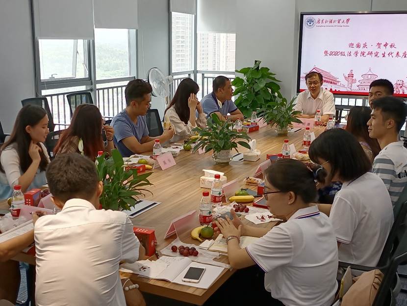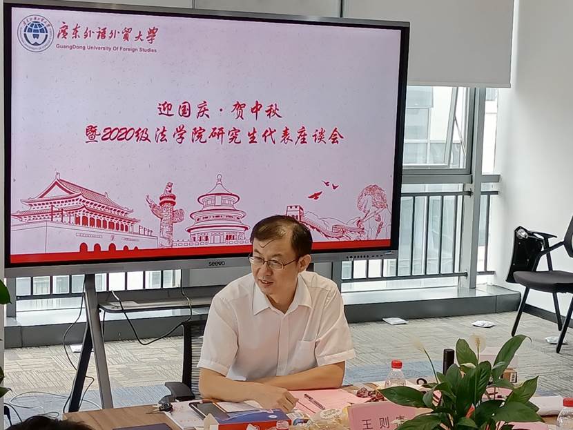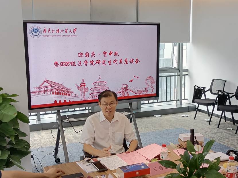 10月1日上午,我院在知识城校区第二会议室顺利召开迎国庆·贺中秋暨2020级法学院研究生代表座谈会。法学院党委书记王则唐,党委副书记刘军以及十二名研究生代表参加了会议,会议由2020级研究生辅导员刘运宇主持。